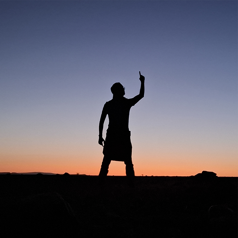 Non è in mezzo al deserto, ma davanti a lui l’orizzonte sembra infinito.
