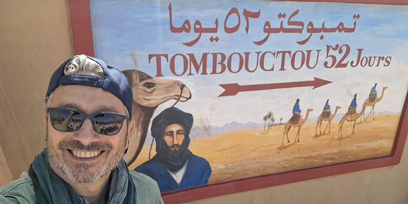 Poi ecco un’icona di chi ama le strade lunghe: il cartello “Tombouctou 52 jours”.